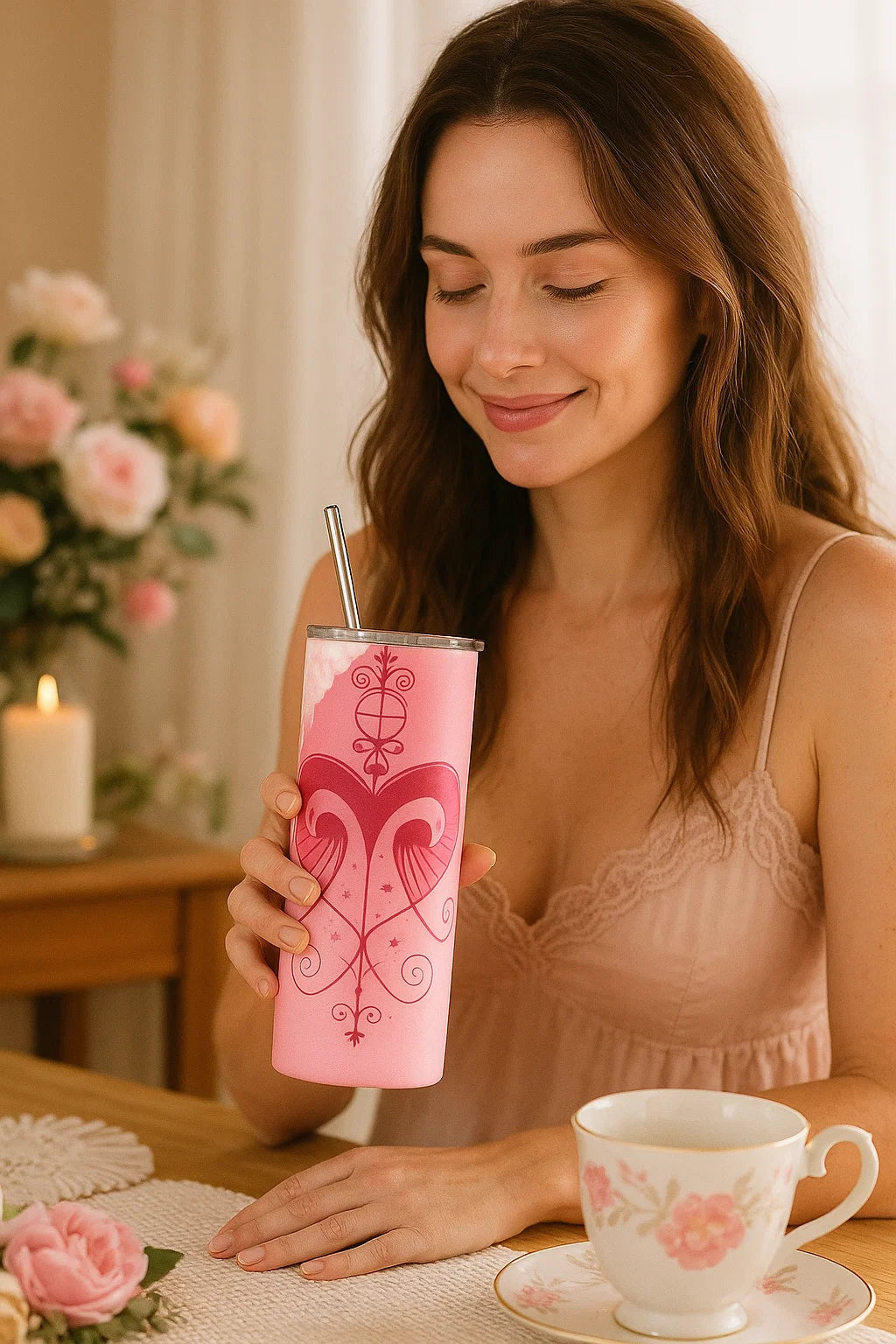 Celebrate beauty, love, and feminine strength with this radiant tumbler, perfect for rituals, affirmations, or your daily brew.